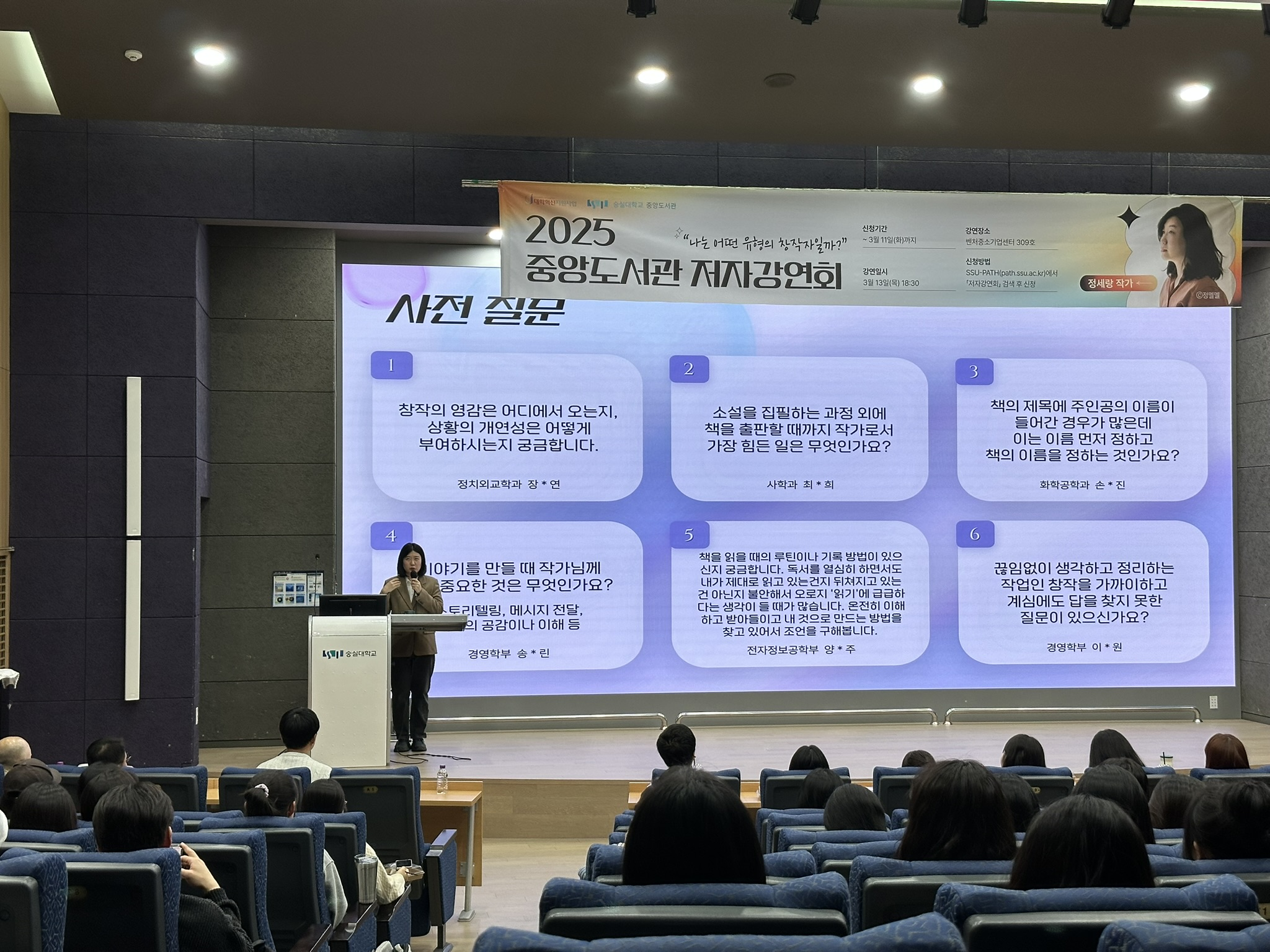 ※사전Q&A 현장 사진(2025-1 정세랑 작가 강연회)
