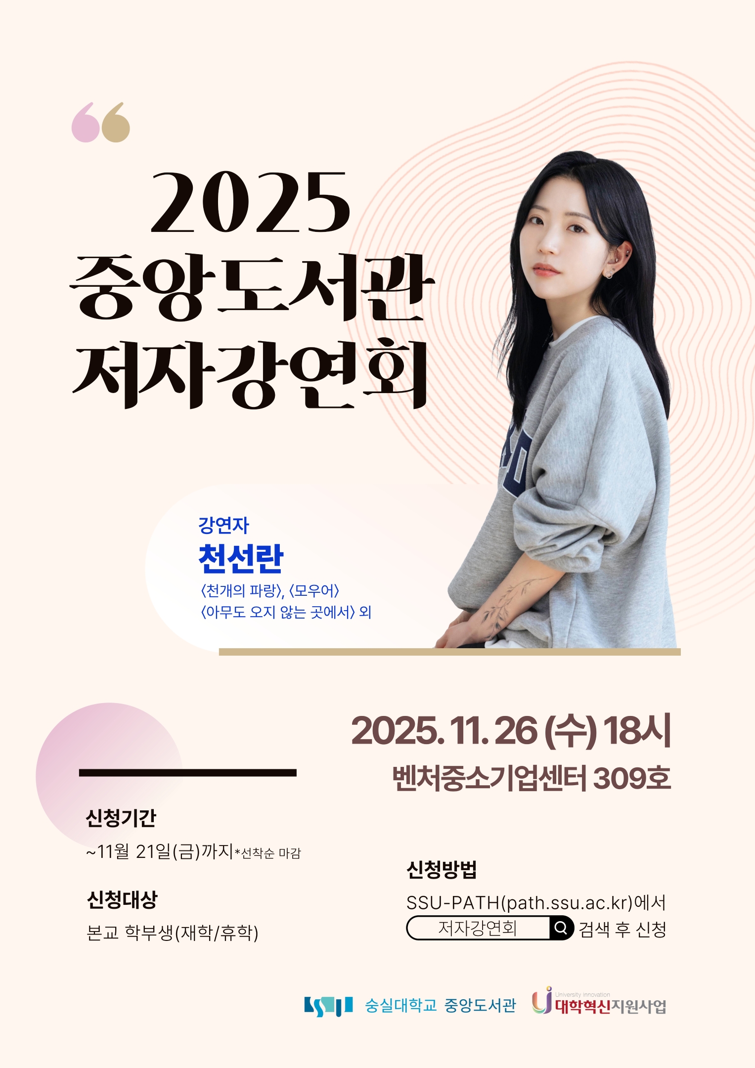 슈패스 신청기간: 11/3(월) ~ 21(금) ‘저자강연회’ 검색 후 신청*선착순마감